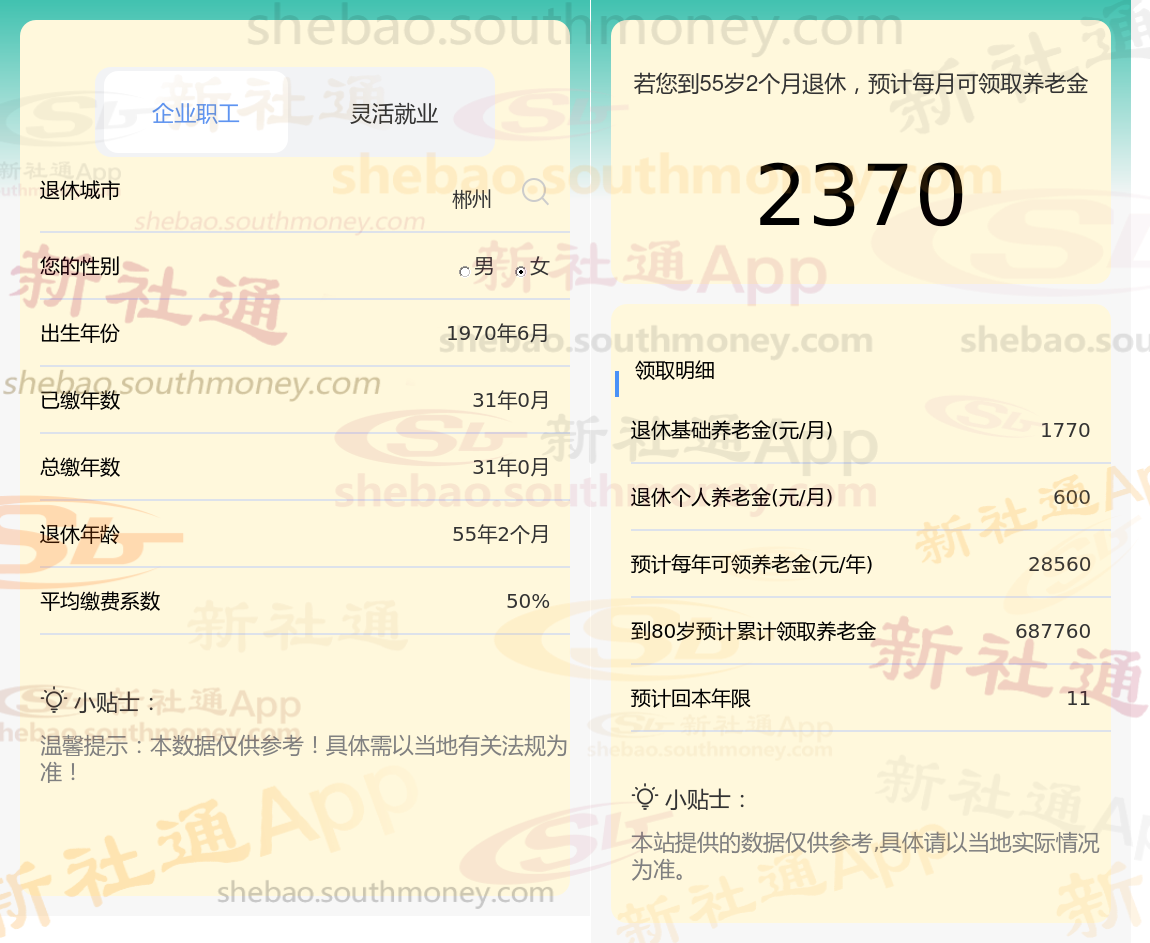 新社通app养老金计算器算出养老工资能拿多少?