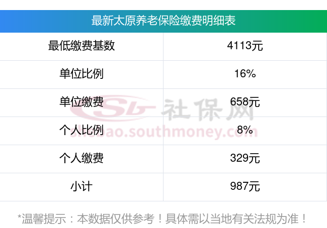 据新社通app显示,太原职工养老保险最低缴费基数为:4113元;单位和个人的缴费比例分别为:16%、8%;