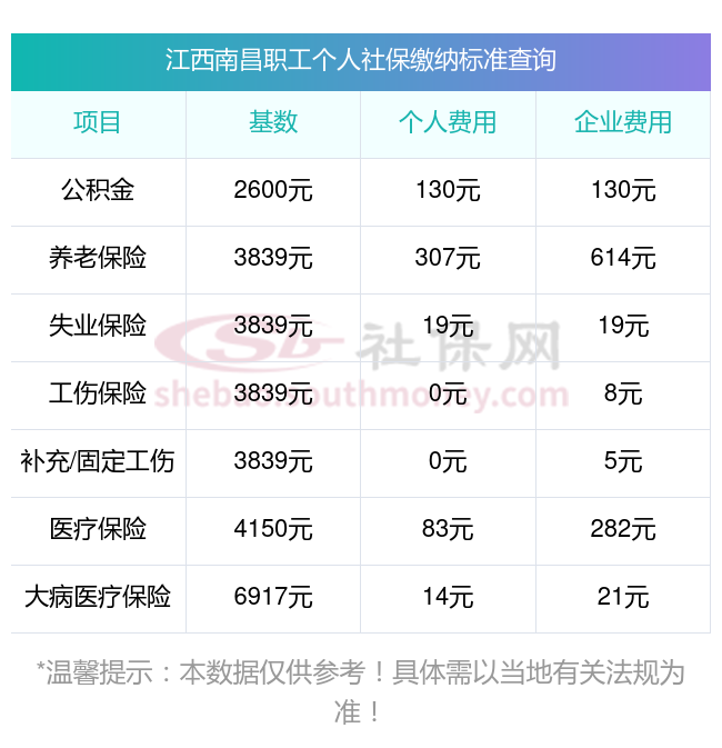 江西南昌最低配的五险一金自己交多少?下面和新社丫丫一起来了解下2024-2025年江西南昌最低配社保费用明细参考,新社通app-社保缴费查询工具提供的最新数据如下:
