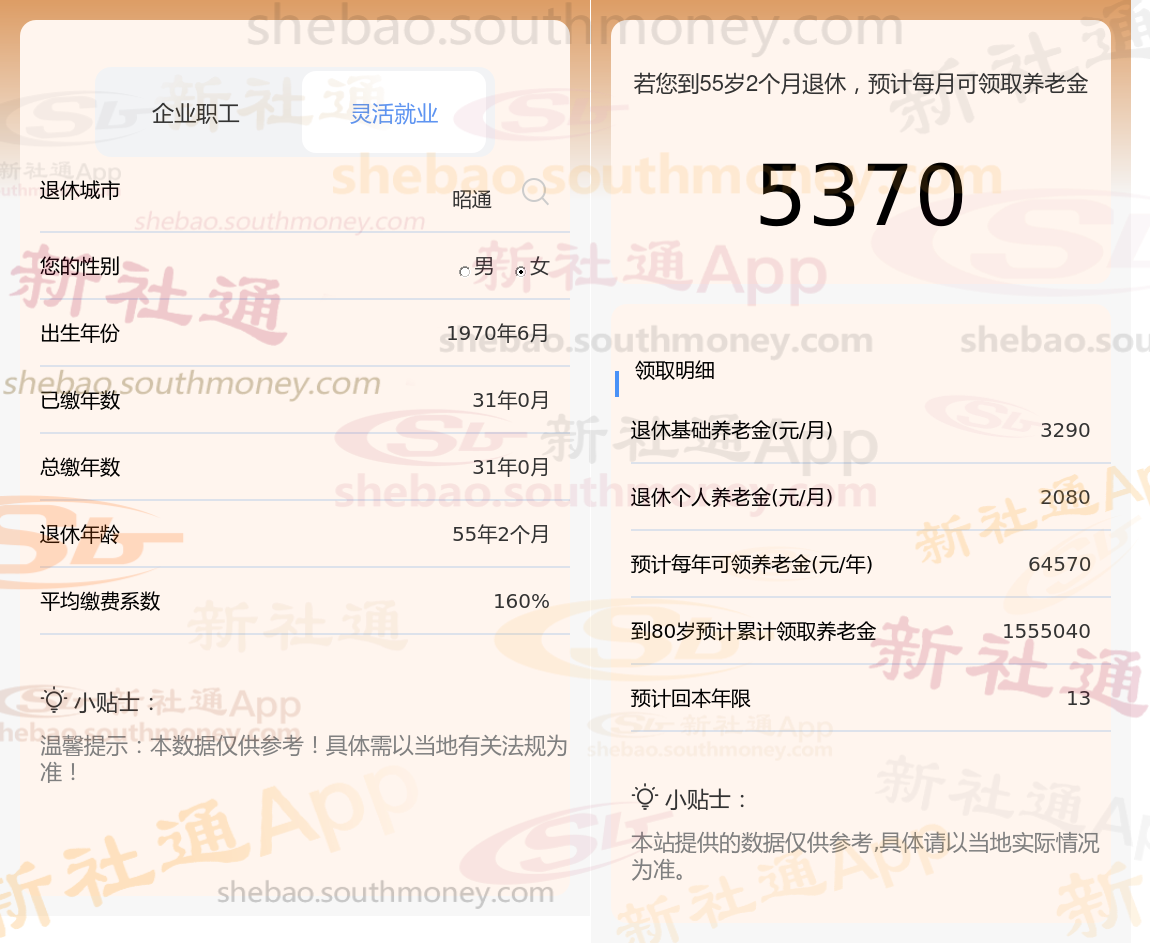 林某,作为一位勤勉的职工,他的养老保险缴纳记录长达31年之久,且缴费档次一直保持在较高的160%水平。基于这些关键数据,我们利用新社通app养老金计算器,结合最新的养老保险法规,对其养老金进行了如下估算: