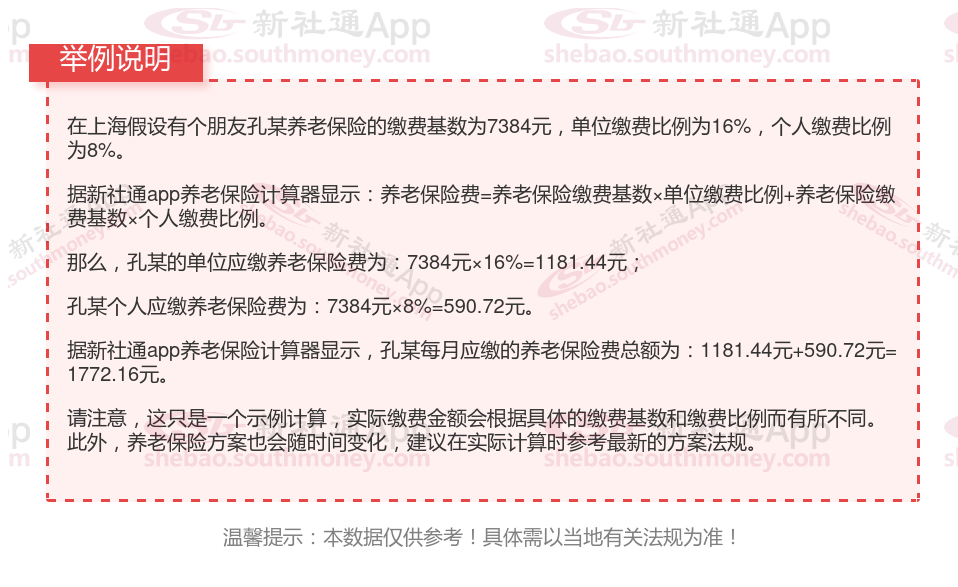 据新社通app显示,上海2024-2025企业职工养老保险的缴费基数为:7384元。