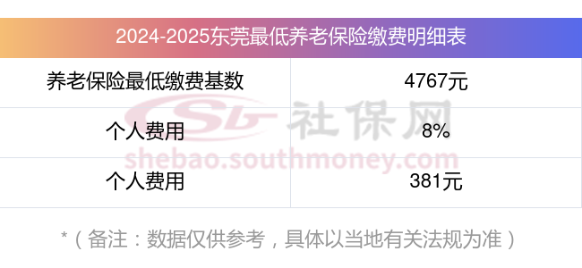 东莞养老保险最低缴费基数:4767元;