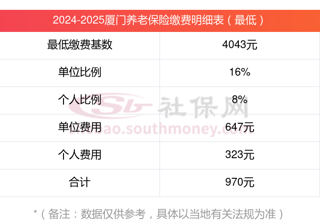 据新社通app显示,厦门2024-2025企业职工养老保险的缴费基数为:4043元。