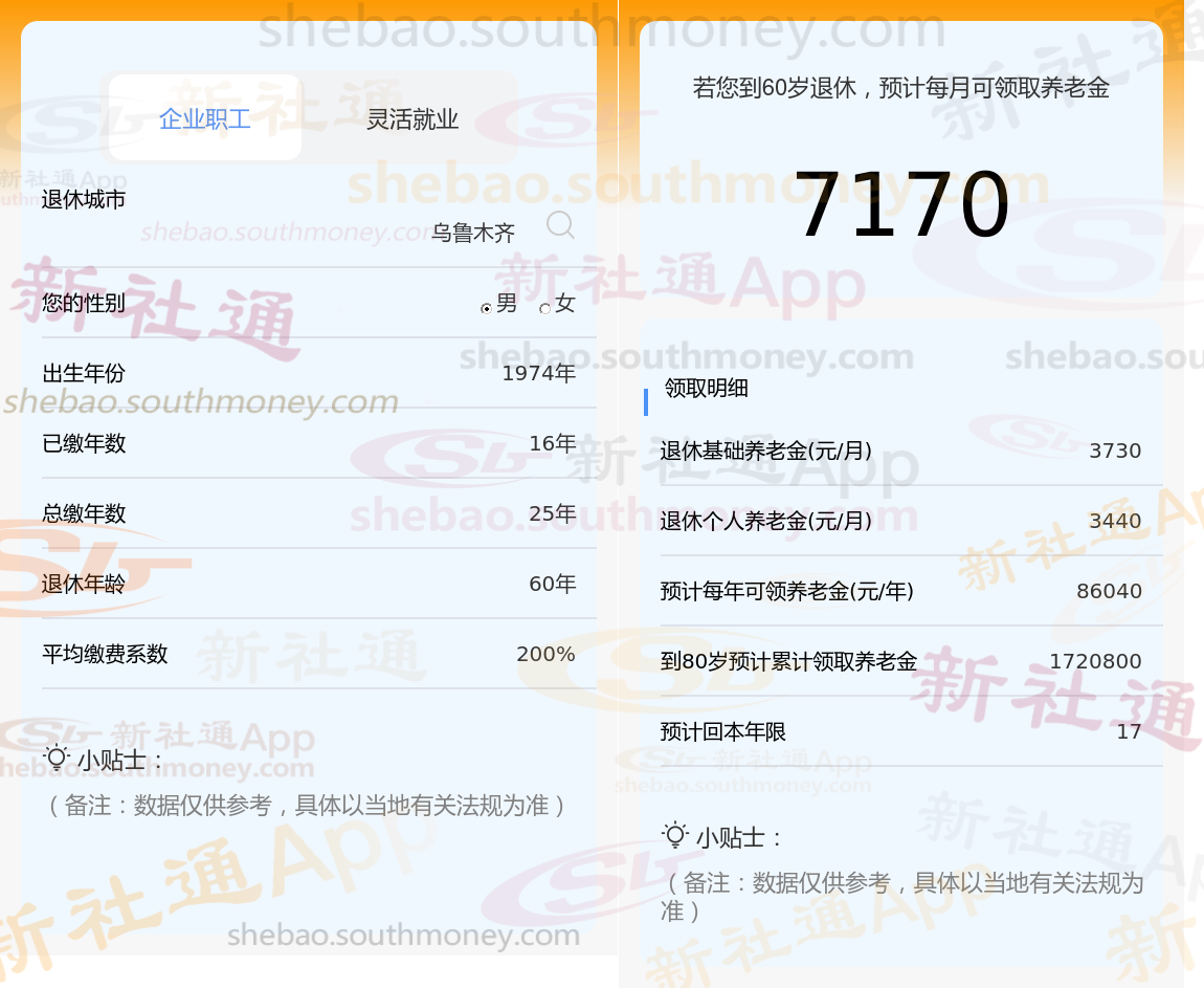 》点击新社通app养老金计算器,快算算你的养老金够不够花!