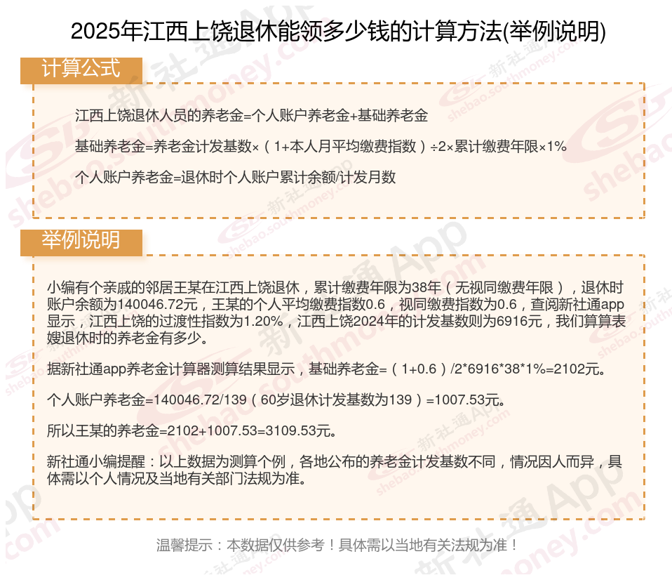 江西上饶养老金计算公式2024年最新计算器 社保退休能领多少钱?