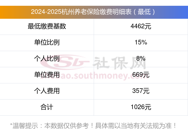 据新社通app显示,杭州职工养老保险缴费基数2024-2025年最新标准如下:
