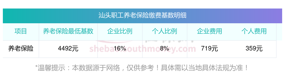 汕头养老保险缴费基数2023年最新标准(最低)