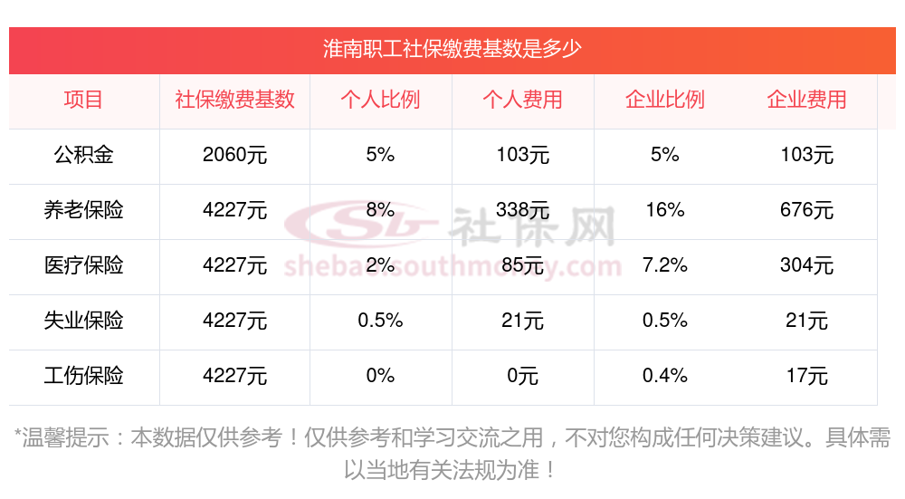 淮南五险一金扣多少钱?下表是2024-2025年淮南社保费用明细参考,新社通app-社保缴费查询工具提供的最新数据如下: