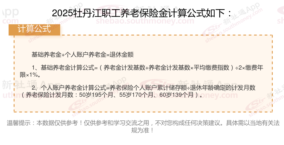 退休城市:牡丹江,性别:男,出生年份:1965,总缴年数17年,缴费档次:160%,新社通app养老金计算器所得: