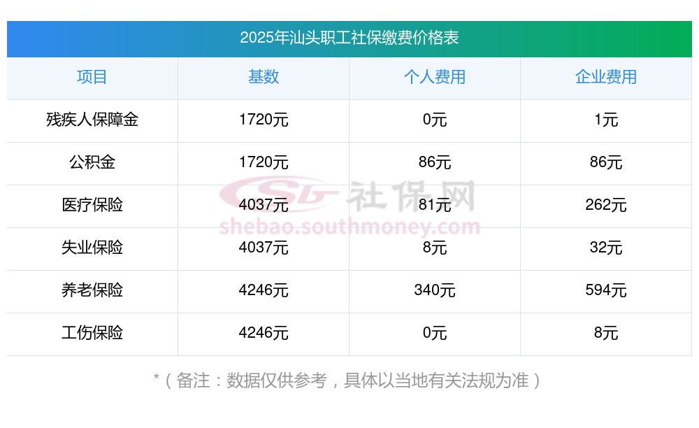 广东社保个人怎么交费?下表是2024-2025年汕头社保费用明细参考,新社通app-社保缴费查询工具提供的最新数据如下: