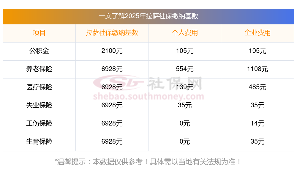 拉萨的社保缴费情况,依据2025年最新的缴费标准,我们可以详细地进行如下说明。这些标准是根据新社通app-社保缴费查询工具提供的数据整理得出的:
