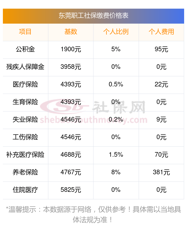2025年东莞五险缴费标准是多少,2025年东莞社保缴费多少钱?下表是2025年东莞社保费用明细参考,新社通app-社保缴费查询工具提供的最新数据如下:
