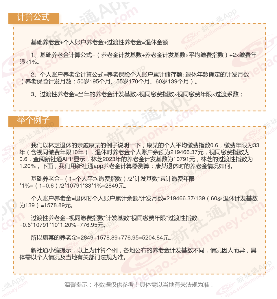 基础养老金=(养老金计发基数+养老金计发基数×平均缴费指数)÷2×累计缴费年限(含视同缴费年限)×1%;