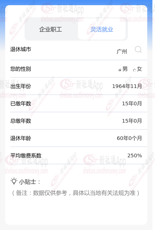新社通app养老金计算器计算所得: