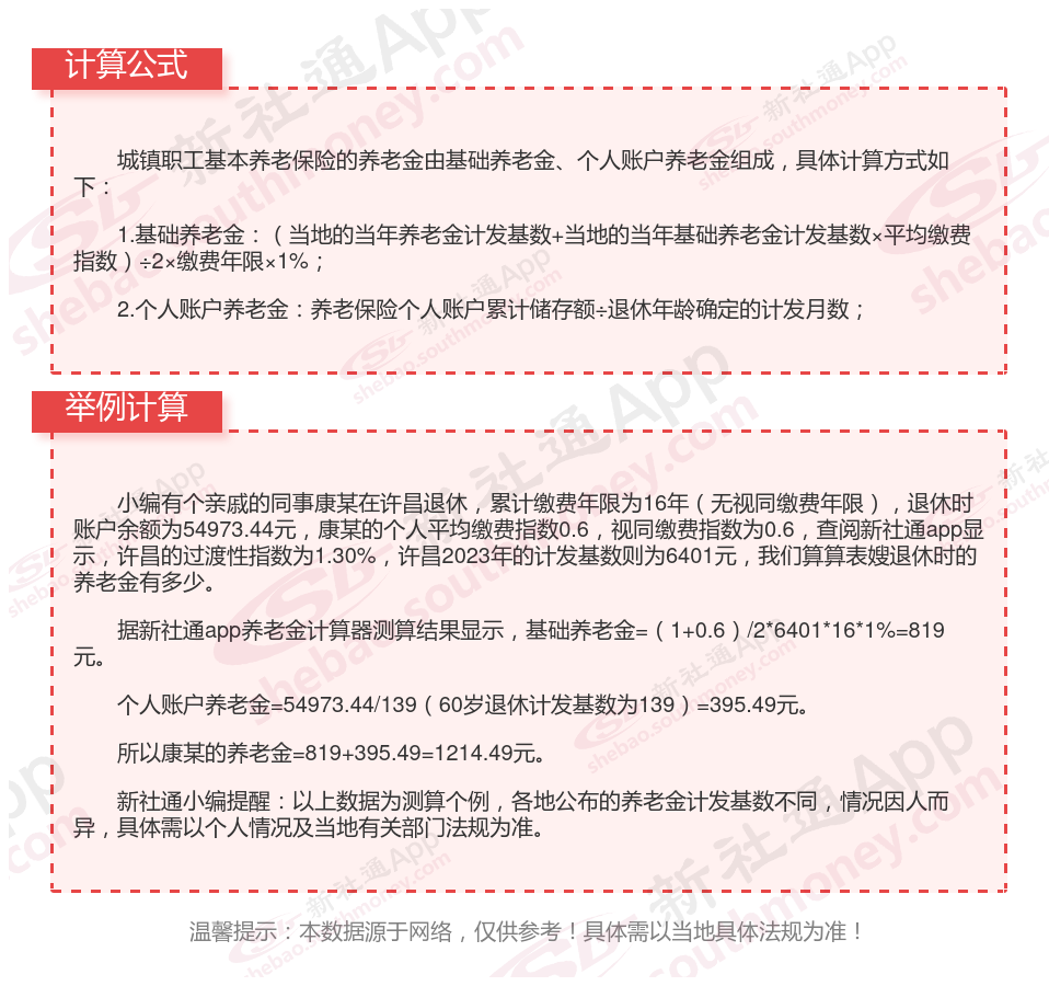基础养老金=(全省上年度在岗职工月平均工资+本人指数化月平均缴费工资)÷2×缴费年限×1%=全省上年度在岗职工月平均工资(1+本人平均缴费指数)÷2×缴费年限×1%