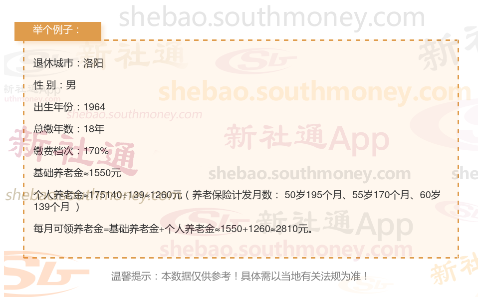洛阳的一位男性灵活就业退休人员向我们发起了咨询。他出生于1964年,工龄达到了18年,期间他的养老保险一直是按照标准的170%档位进行缴纳的。他非常关心自己退休后每月的养老金数额,并询问我们,根据他的工龄和缴费情况,他的养老金是否能达到或超过2700元,以确保他的退休生活品质。