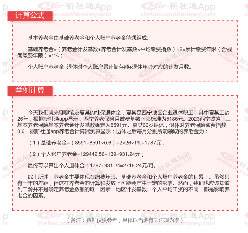 个人账户养老金=个人账户的余额÷计发月数(50岁为195、55岁为170、60岁为139)。