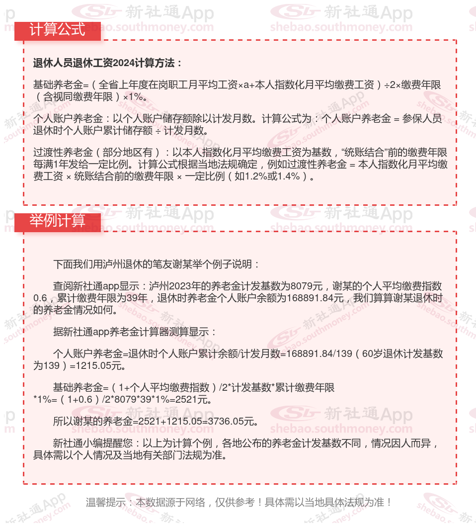 退休人员养老金计算方法2024: