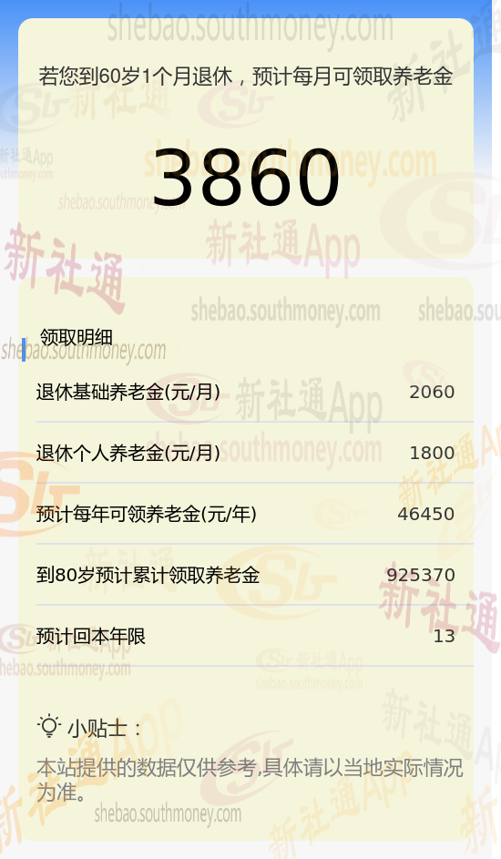 新社通app养老金计算器养老金估算详解