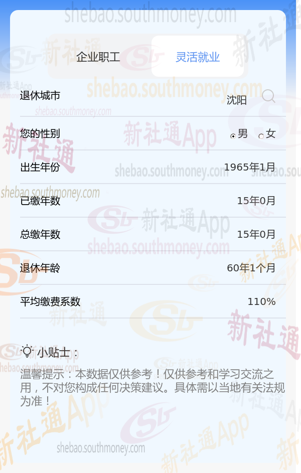 新社通app养老金计算器计算所得: