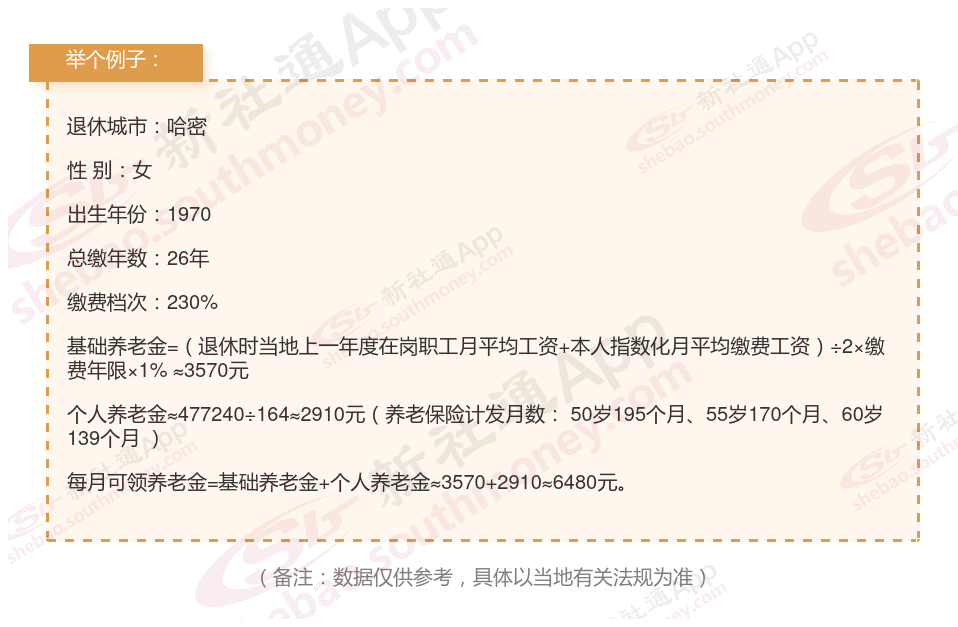 综合养老金:两者相加,每月总计6480元/月。