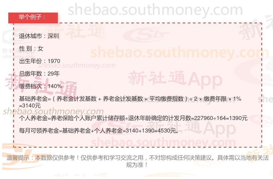 新社通app养老金计算器计算所得: