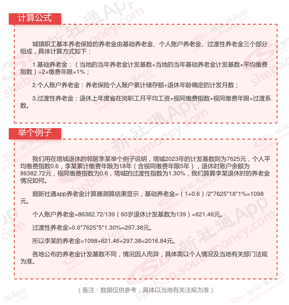 过渡性养老金(适用于特定人群):具体计算方法因地区而异,需参照当地法规执行。