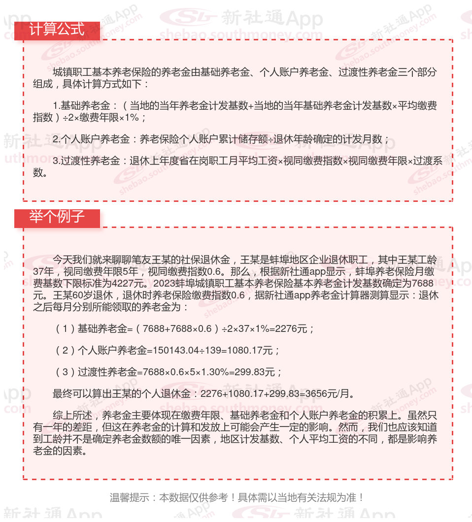 基础养老金等于退休当年的养老金计发基数(部分地区也称为退休上年度全口径社平工资)×(1+本人平均缴费指数)÷2×缴费年限×1%。