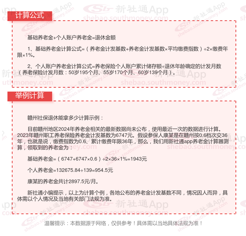1.基础养老金:(当地的当年养老金计发基数+当地的当年基础养老金计发基数×平均缴费指数)÷2×缴费年限×1%;
