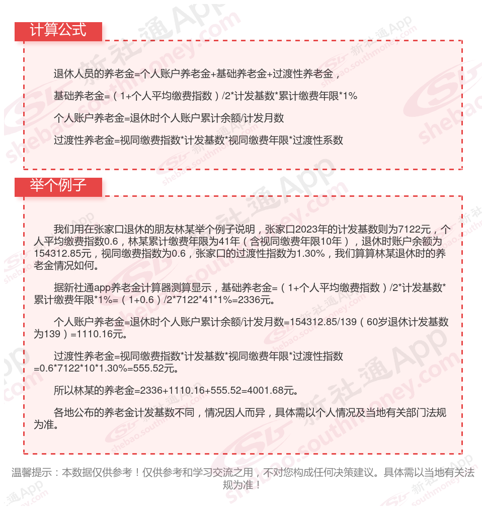 基础养老金=(参保退休时本省上一年度在岗职工月平均工资+本人指数化月平均工缴费工资)÷2×缴费年限×1%。