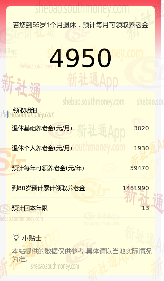 新社通app养老金计算器算出社保每月拿到多少钱?