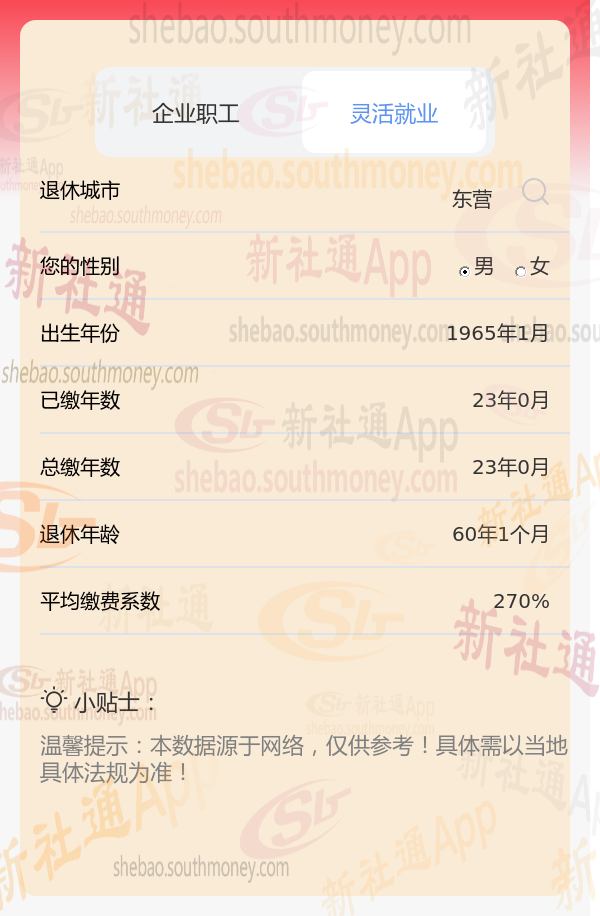 和新社APP一起看个例子,东营工龄23年养老退休金如何计算?