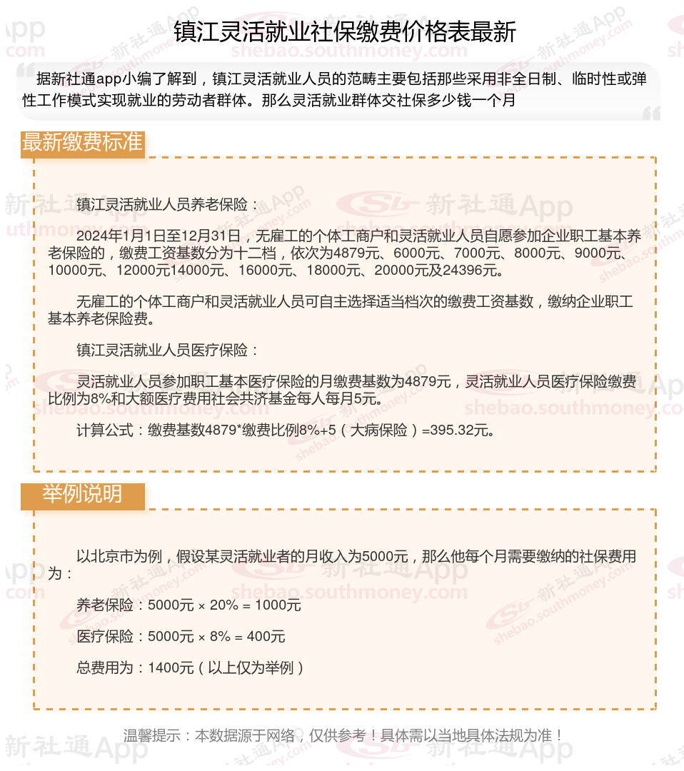 据新社通app数据显示,2024-2025年镇江灵活就业人员养老保险的缴费标准: