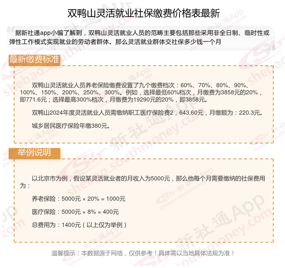 据新社通app数据显示,双鸭山灵活就业养老保险缴费基数2024-2025年最新标准如下: