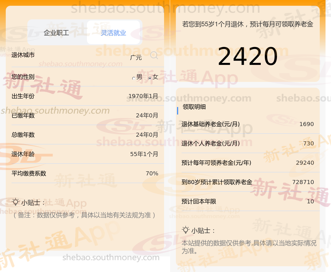 通过上面公式和新社丫丫根据新社通app-社保缴费查询工具提供的最新数据一起来了解下,广元退休养老金怎么算?