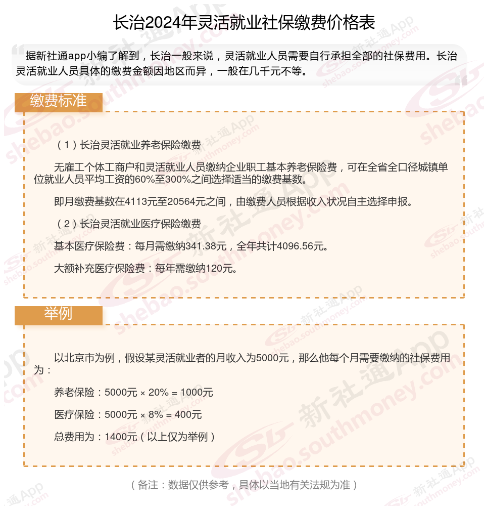 据新社通app数据显示,2024-2025年长治灵活就业人员养老保险的缴费标准: