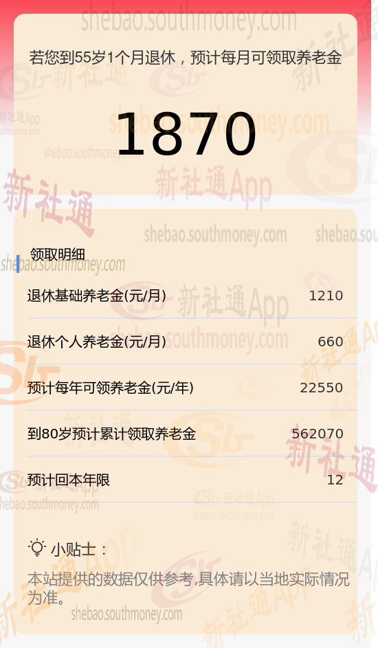 将基础养老金与个人养老金相加,我们就可以得出每月可领取的养老金总额。即1210元(基础养老金)加上660元(个人养老金),总计约为1870元。这个数字为退休人员提供了一个相对稳定的月度收入来源。