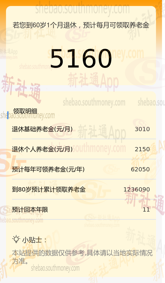 个人养老金计算结果:将上述数据代入公式,得出王某的个人养老金为每月约2150元。