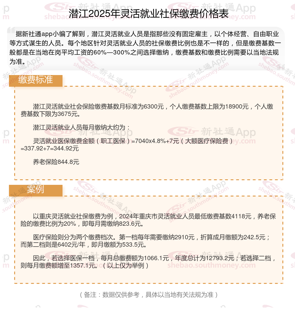 潜江灵活就业人员基本养老保险缴费基数暂按不低于3675元;