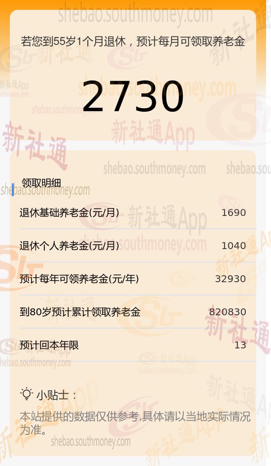 新社通app养老金计算器计算所得: