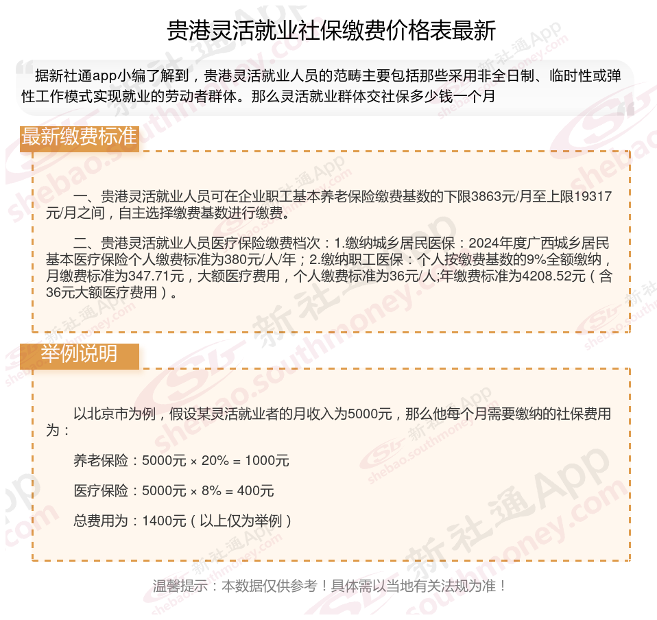 贵港灵活就业人员社保缴纳金额怎么计算?根据新社通app-社保缴费查询工具提供的最新数据如下: