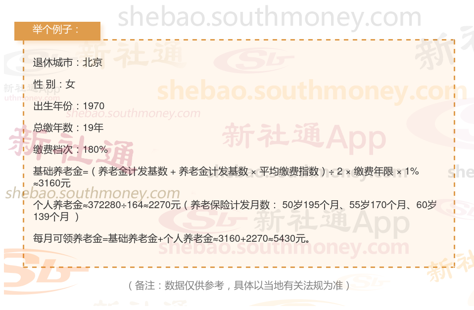 新社通app养老金计算器计算所得: