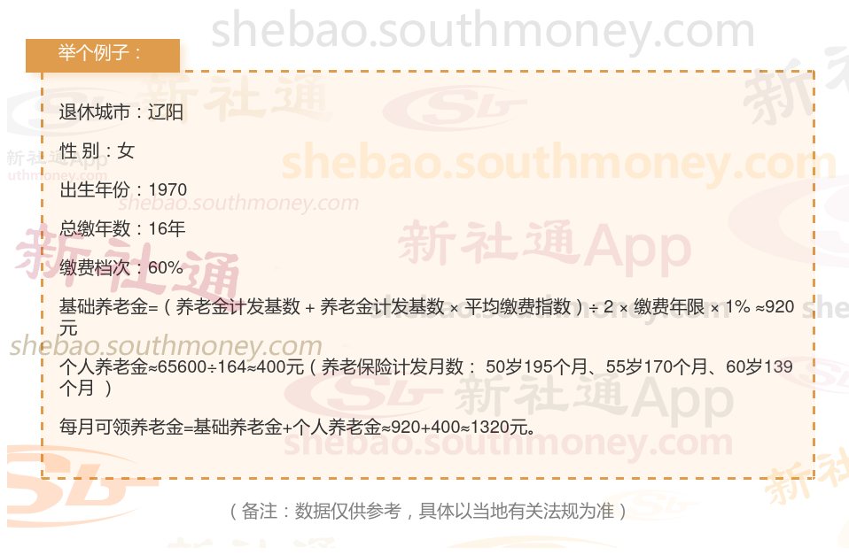 希某,辽阳人,1970年出生,是一名拥有16载社保缴费年限的退休女性,缴费档次稳定在60%。岁月流转,她终于迎来了自己的退休时光。借助新社通app养老金计算器计算所得,希某惊喜地发现,她每月可以领取到基础养老金大约920元,再加上个人养老金约400元,两项合计,她每月的养老金总额达到了1320元。虽然数额不大,但足以让她的退休生活充满温馨与安宁。