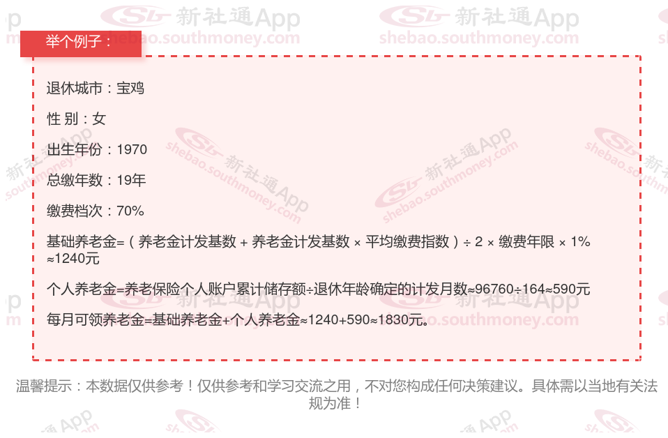 下面随着新社通APP一起来看看,陕西宝鸡交19年养老保险每个月能领多少?