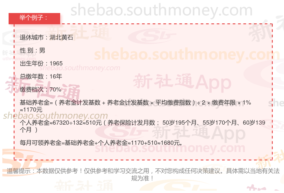 下面随着社保君一起来看看,湖北黄石社保交满16年每月领多少钱?