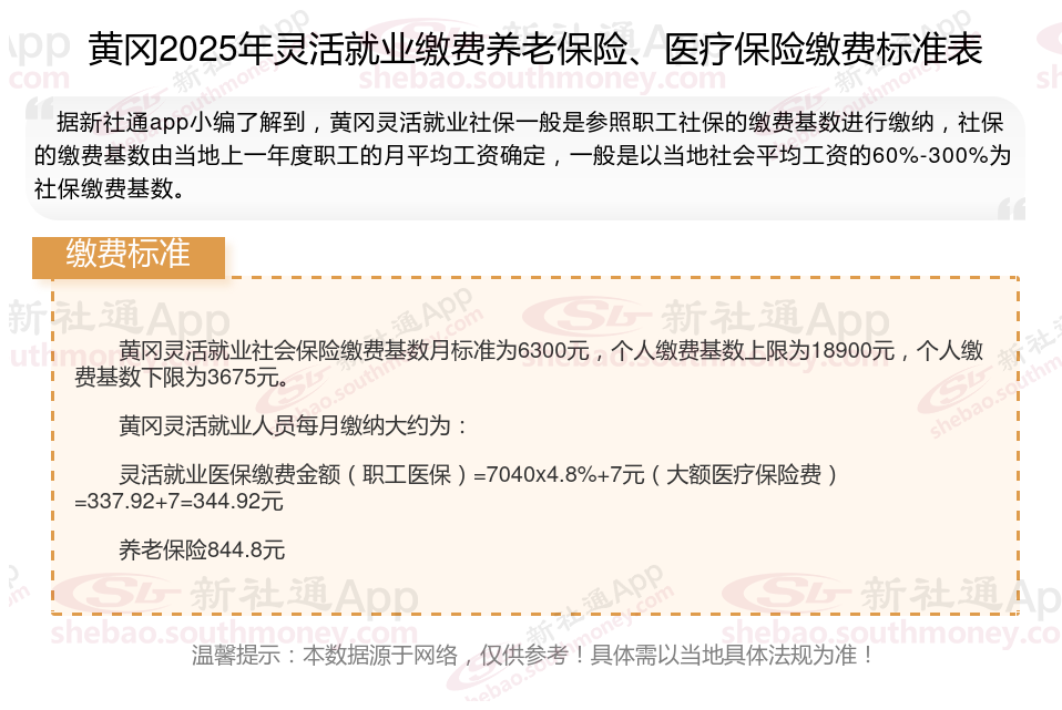 2025年黄冈城镇职工社会保险缴费基数用人单位及其职工(包括有雇工的个体工商户及其雇工)分别按2024年度全口径省平的60%(3675元/月)和300%(18900元/月)核定缴费基数的下限和上限执行。
