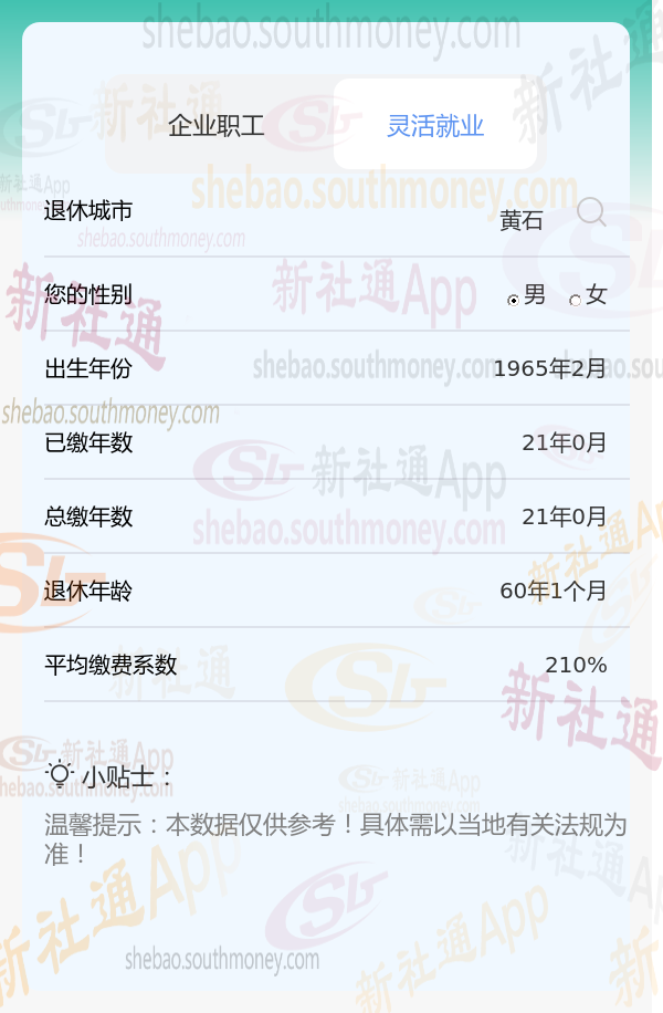 孔某是一位男性,1965年出生,现已退休。他居住的城市是黄石,在职业生涯中,他累计缴纳了21年的社会保险,缴费档次为210%。