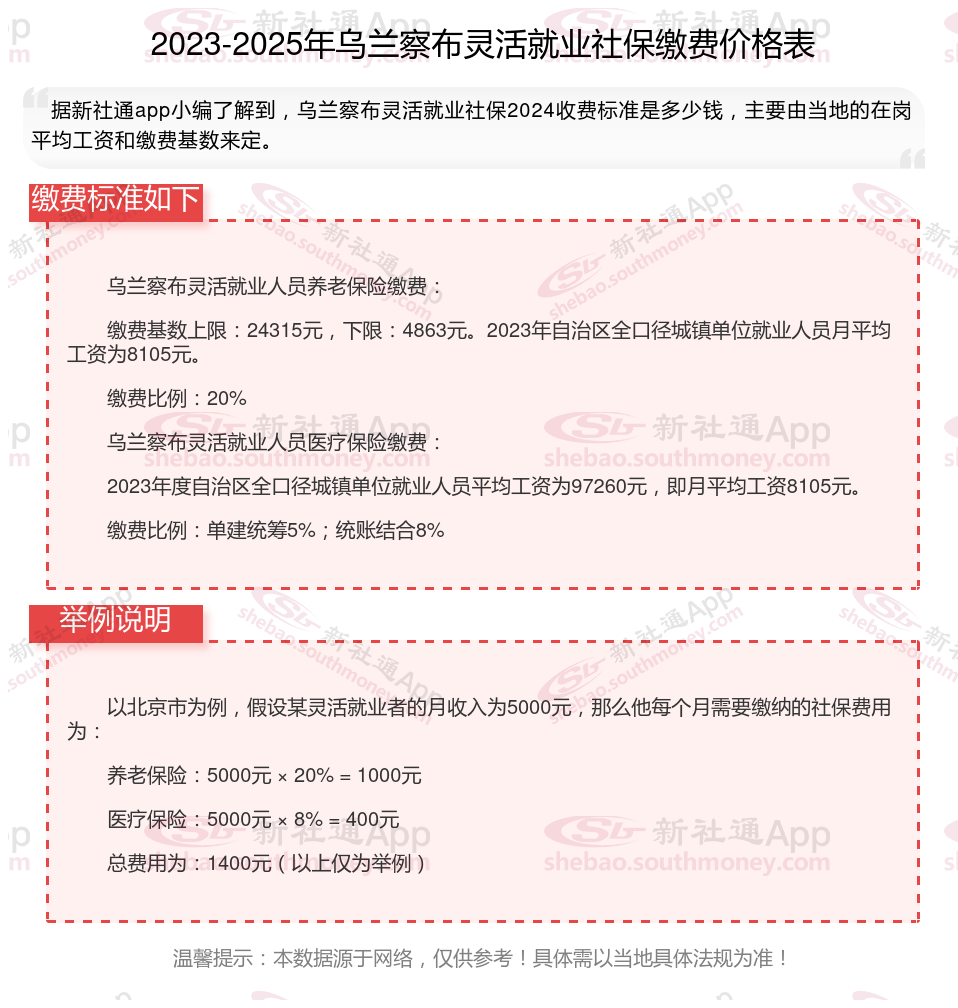 据新社通app数据显示,乌兰察布灵活就业养老保险的缴费基数为:4863元。灵活就业人员参保缴费的比例为个人20%。