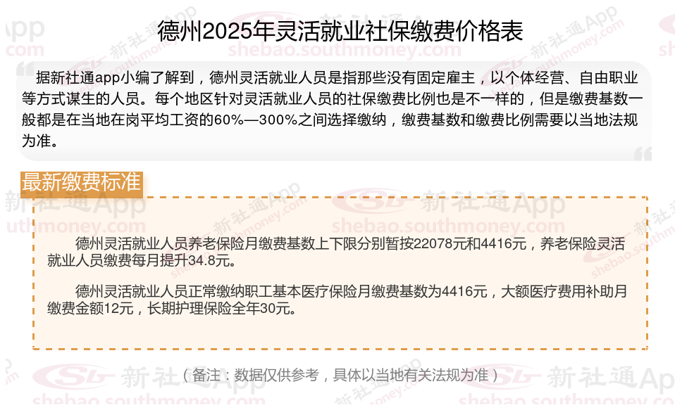 据新社通app数据显示,德州灵活就业养老缴费基数明细如下: