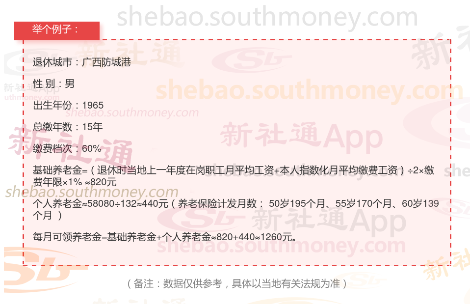 下面一起来分享个例子:网友吕某,社保缴纳15年要退休了,按60%档位缴纳,养老工资能拿多少?